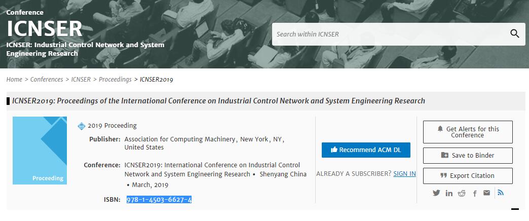 The proceedings of ICNSER2019 was published on ACM Digital Library (ISBN: 978-1-4503-6627-4).